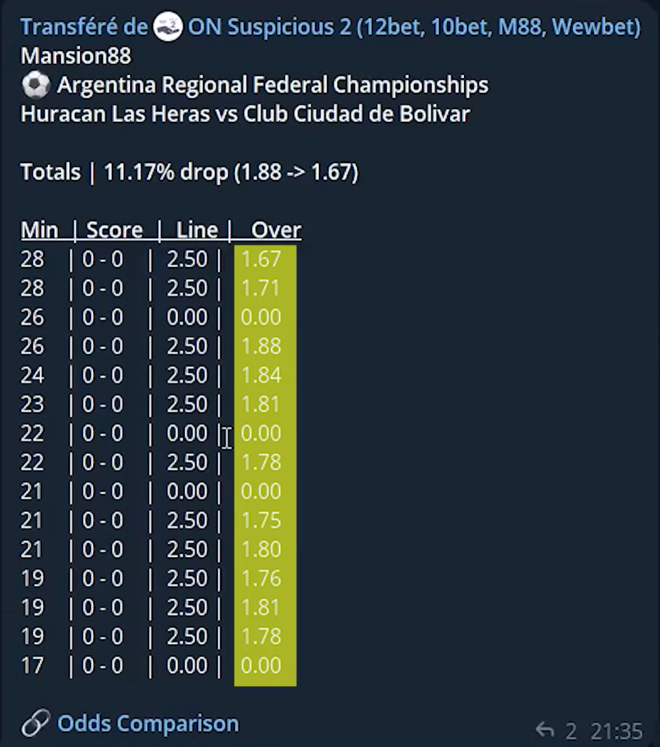 Pour celà, rejoins le canal Telegram du bot 👉 https://t.me/oddsnotifiersuspicious1bot