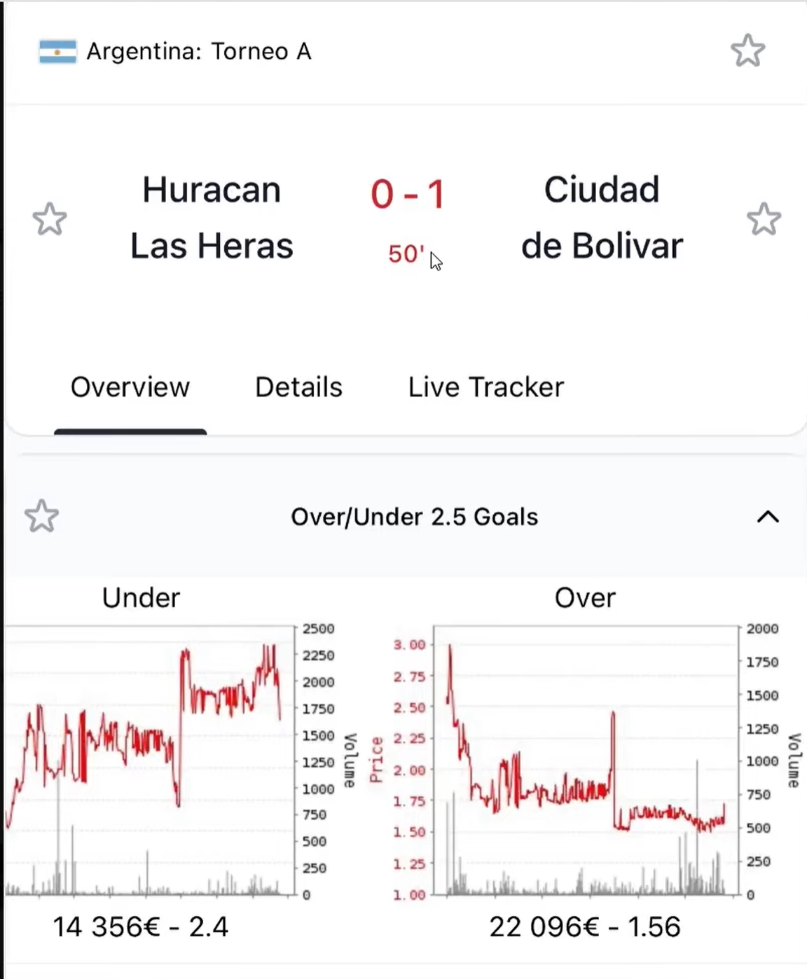 Chute de cote sur l’over 2,5 de 1,80 à 1,67 très tôt dans le match.