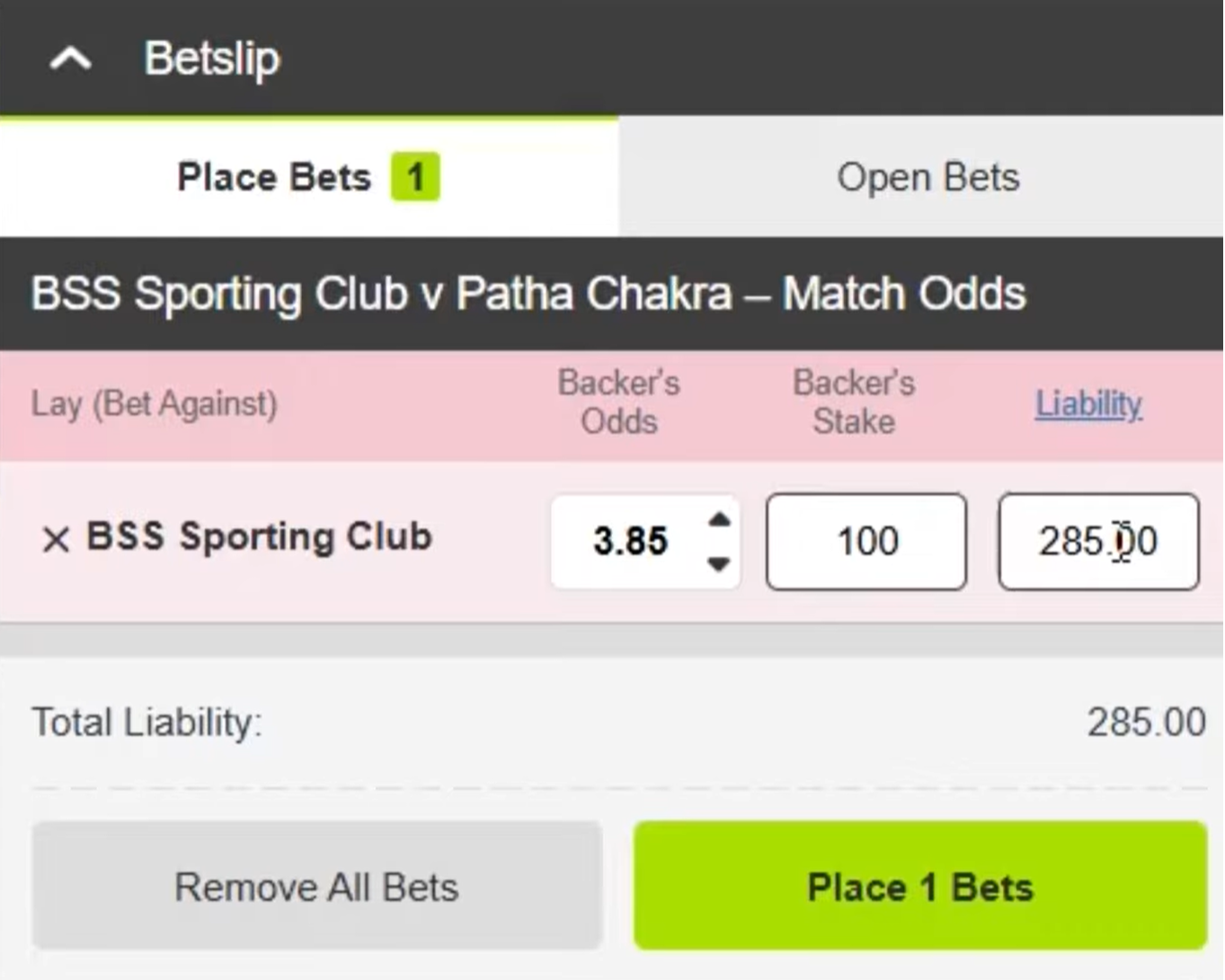⚠️ Exemple de pari Lay