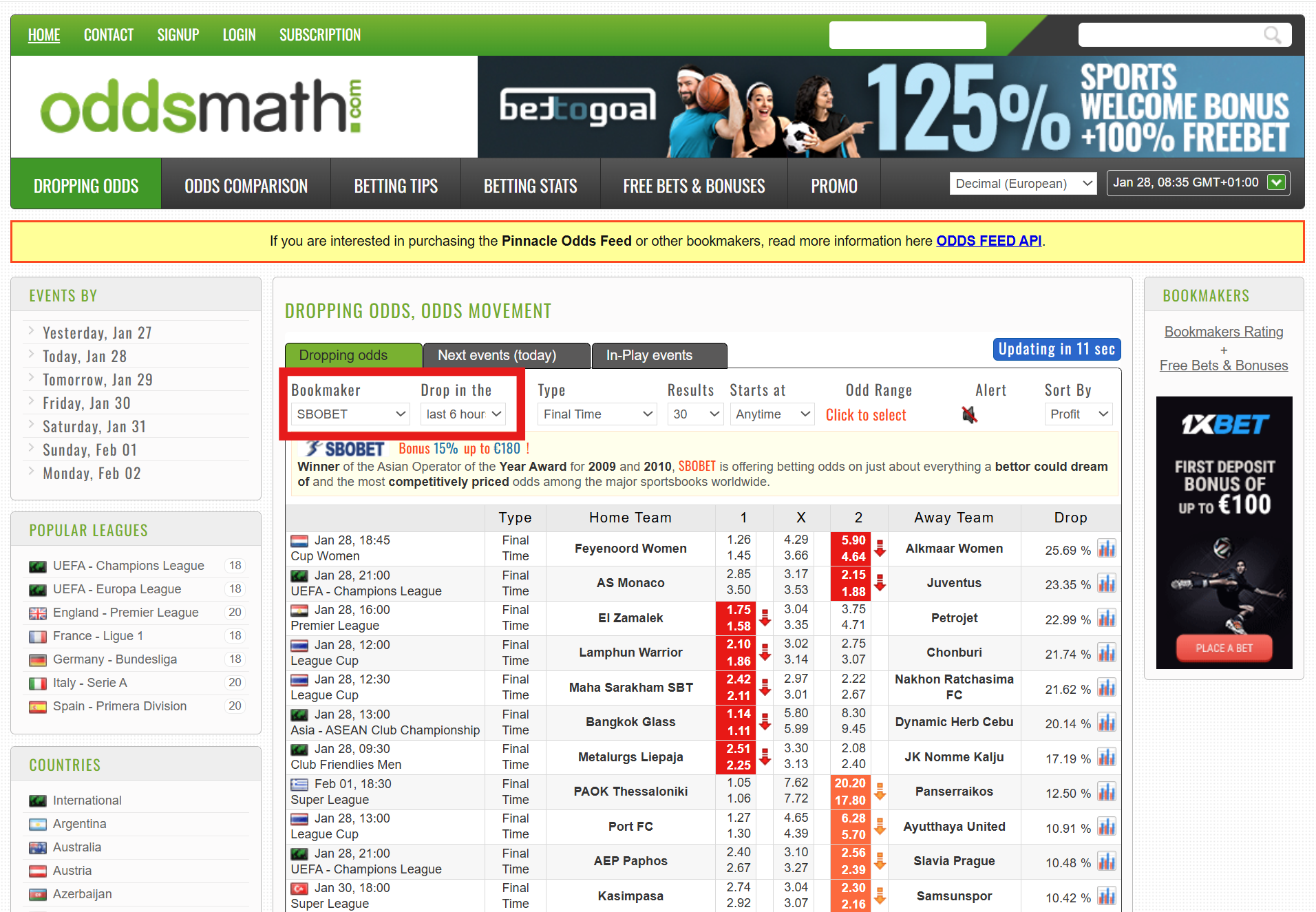 - surveiller les mouvements pré-match (surtout asiatiques)