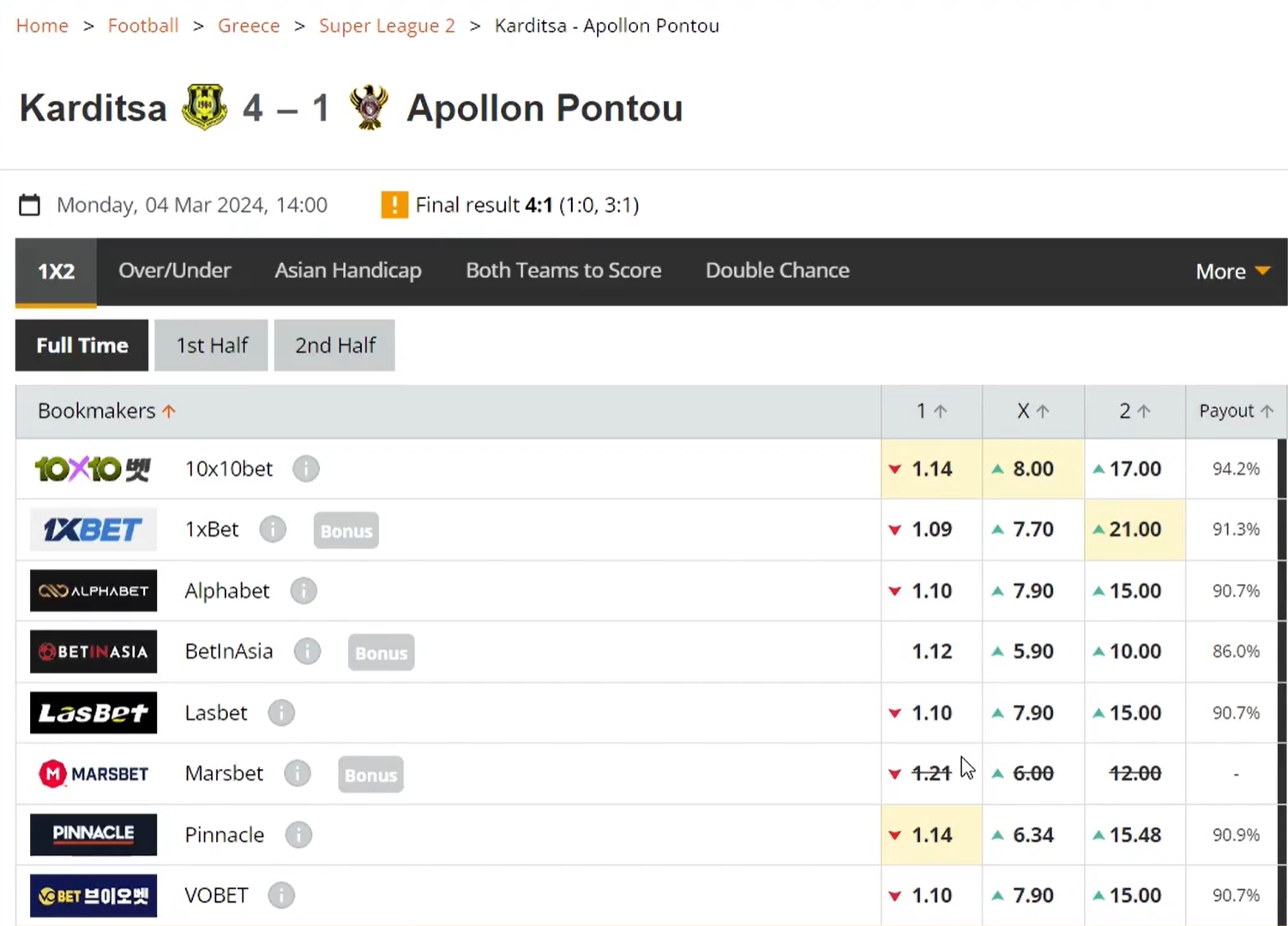 Exemple 1 – Karditsas vs Apollon Kalamaria (Grèce – Super League 2)