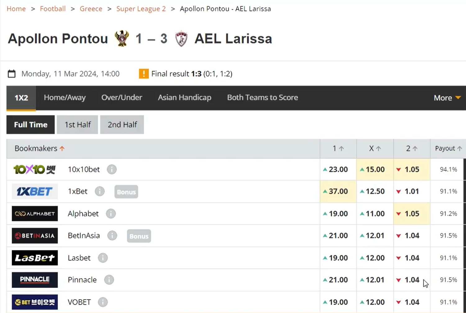 Exemple 2 – Apollon Kalamaria vs AEL Larissa