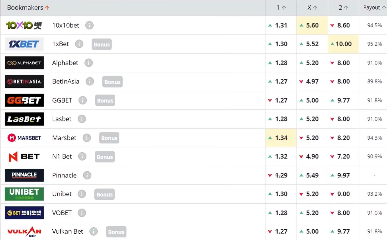Une fois le nombre de buts estimé, on regarde les cotes prématch sur un site comme OddsPortal.